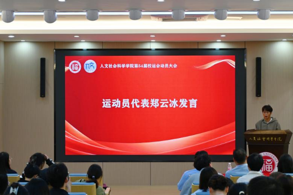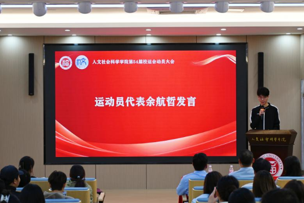 动员会伊始,运动员代表郑云冰、余航哲依次发言。他们分享了从技术生疏到实现突破的备战经历,讲述了坚持中的艰辛与收获,并代表全体运动员表达了为学院争光的决心与斗志。他们郑重宣誓,将在赛场上尊重规则、顽强拼搏,展现人文学子的卓越风采与良好风貌。