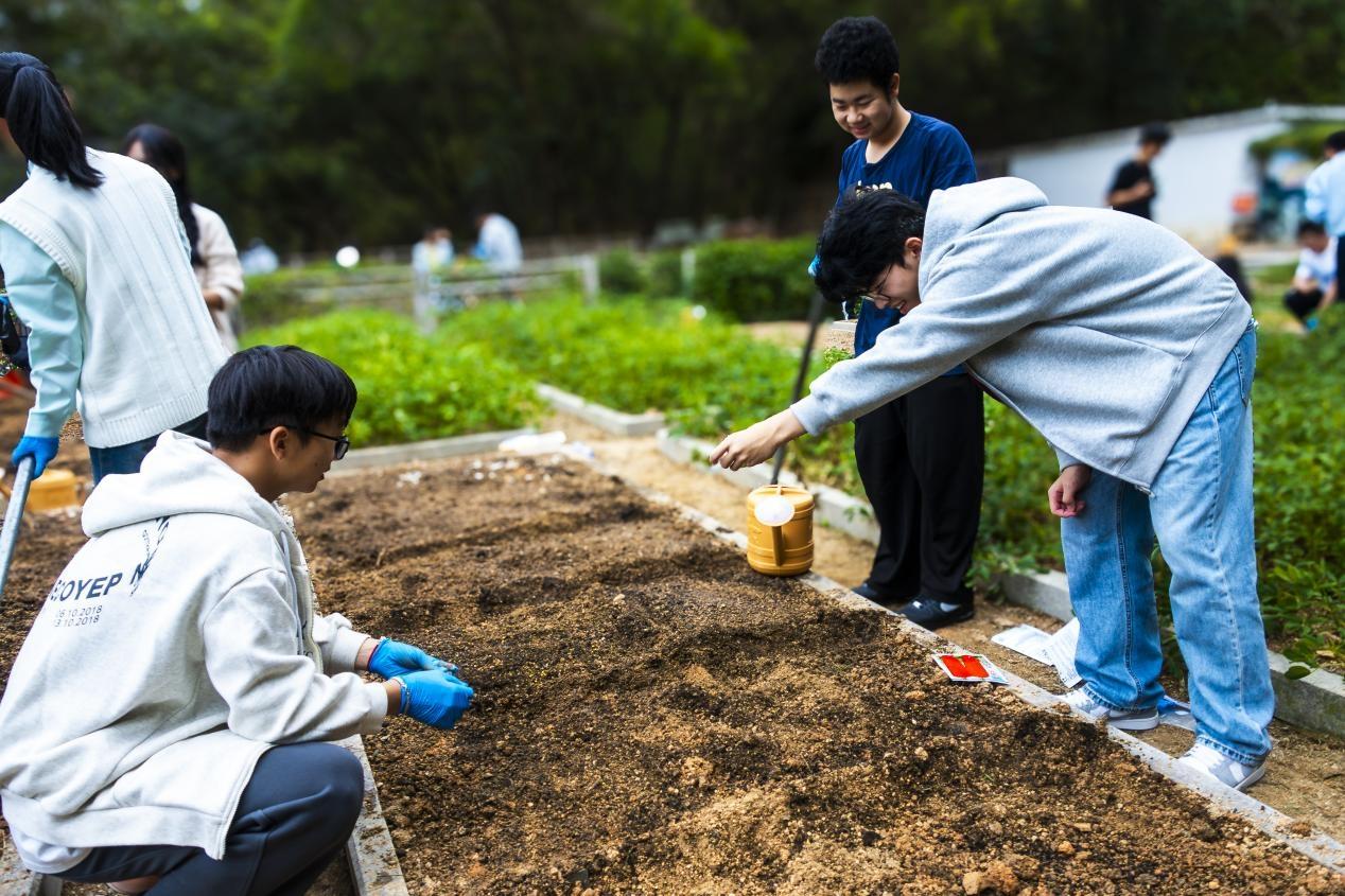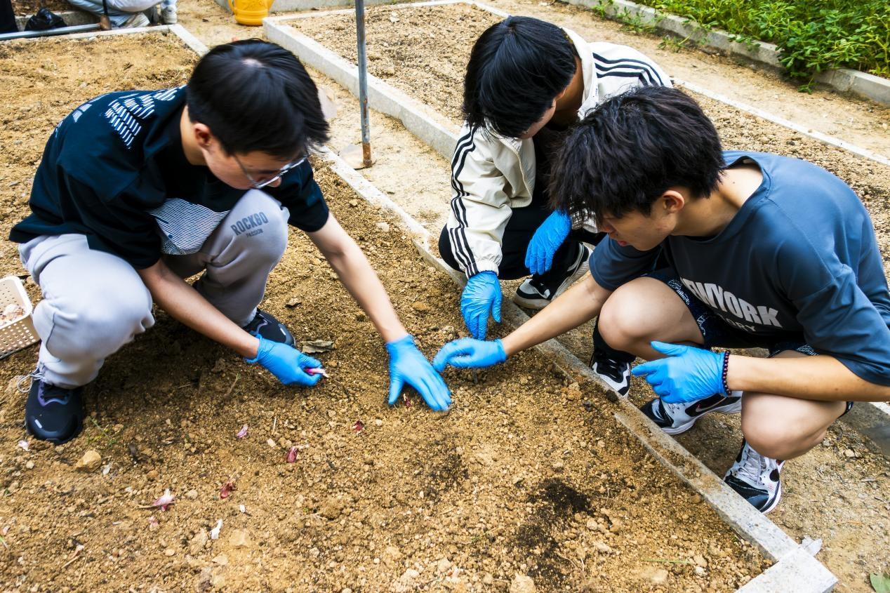 启动仪式后,种植实践环节正式拉开帷幕。同学们在工作人员的专业指导下,有序领取劳作工具,深入田间开展实践:从松土翻地时的力度把控,到播种育苗时的间距考量,再到浇水施肥时的科学配比,工作人员通过“理论讲解+现场示范”的方式,将农耕知识与实践技巧倾囊相授。田垄间,同学们分工明确、配合默契,弯腰播种的身影与泥土的芬芳交织,青春的活力在劳作中尽情释放。每一铲培土,不仅将希望的种子埋入土壤,更将“尊重劳动、热爱劳动”的理念根植于心;每一滴汗水,不仅浸润着土地,更见证着青年学子从“知识学习者”向“实践践行者”的转变。