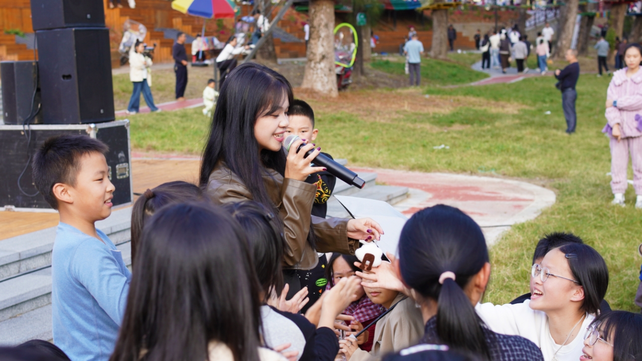 随后,我院学子赖晶晶、付一航、揭温馨、翁子恒轮番登台,精心演绎多首曲目,优美歌声与真挚情感赢得观众阵阵掌声与喝彩。活动还特设音乐课堂与观众互动环节,观众们踊跃上台展示风采,歌声、笑声、掌声回荡山间,勾勒出文艺赋能乡村的鲜活图景。