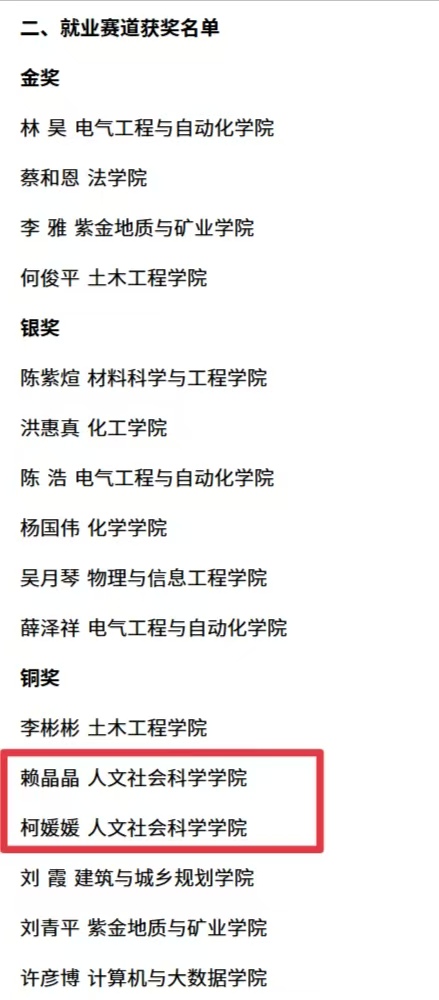 近日,av在线看 公布第三届全国大学生职业规划大赛选拔赛暨第十九届职场文化节之职业生涯规划大赛获奖名单,我院秦思齐、陈天朗同学荣获成长赛道铜奖,赖晶晶、柯媛媛同学获就业赛道铜奖!