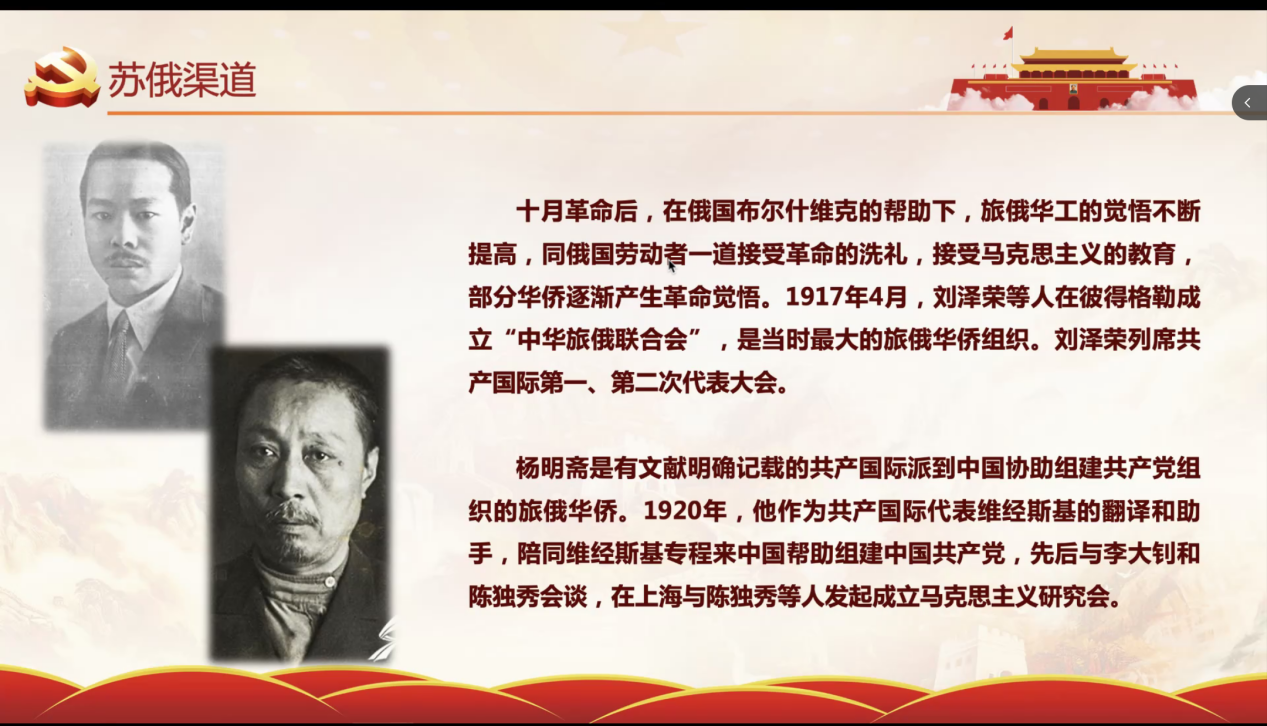 张所长指出鸦片战争后,华侨华人就成了中华民族意识觉醒的群体,成为了孙中山领导的民主革命的鉴定参与者、积极宣传者、有力支持者、英勇献身者,华侨也被孙中山称为“中国民主革命之母”。马克思主义传入中国主要有三种渠道,分别是苏俄、日本、西欧渠道,其中都可以看到海外侨胞、留学生的身影,例如刘泽荣、杨明斋等爱国华侨以及周恩来、邓小平、陈延年、陈乔年等留学生。正是在海外侨胞、留学生的共同努力下,马克思主义才能够在中国生根、开花结果,催生了中国共产党。