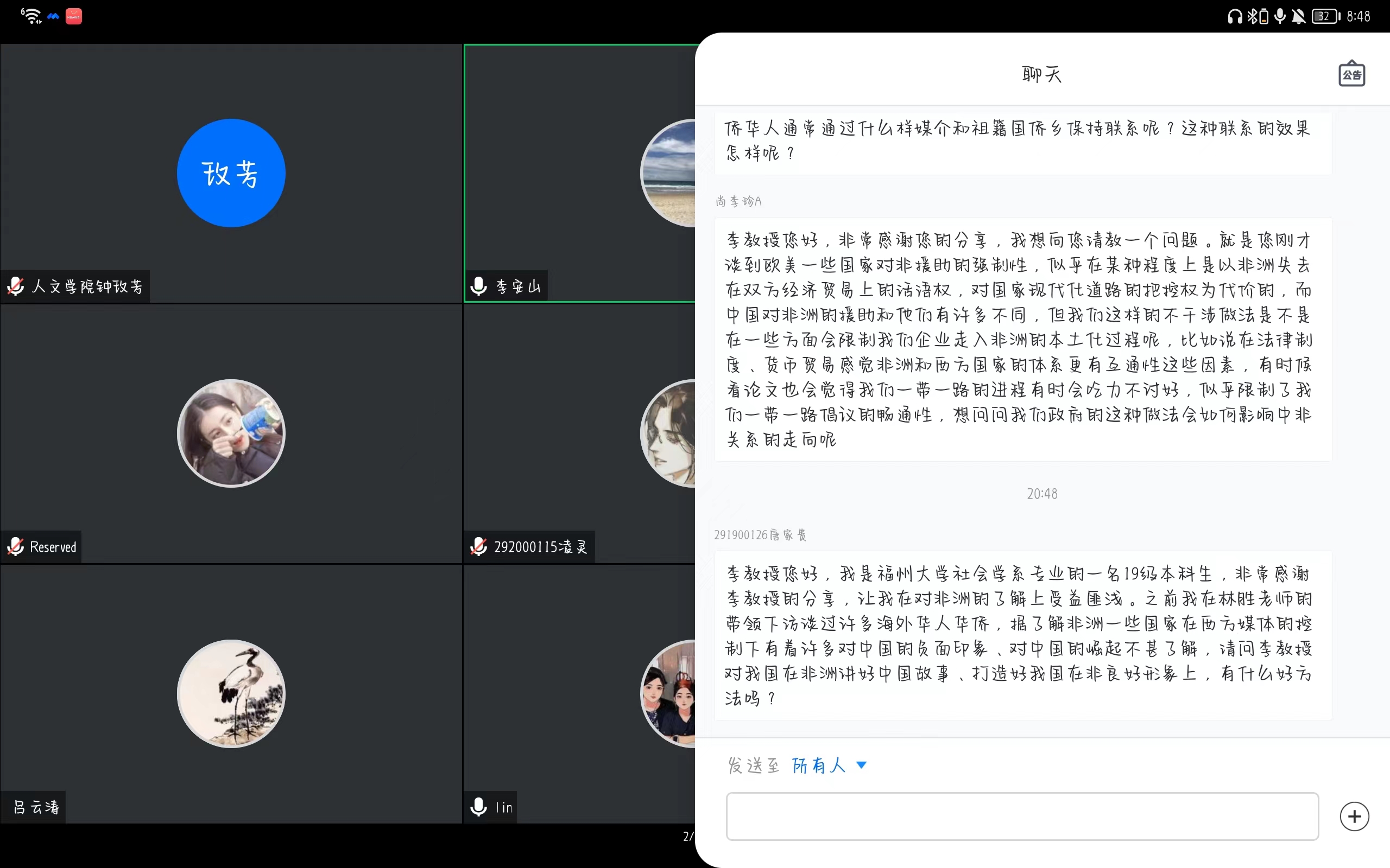 本次线上讲座取得了圆满成功,林胜教授在讲座结束后也表示期待能面对面听李安山老师讲座的愿望,希望能再次听取李安山老师独到珍贵的见解,就维护中非共同利益继续交流,共同为侨务工作做贡献!