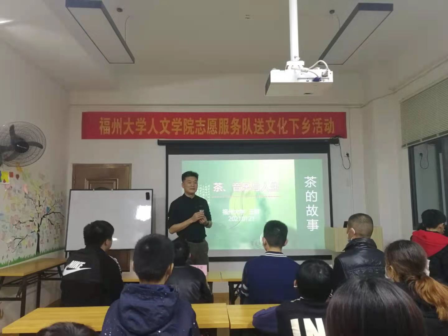 “送文化下乡活动”在图书捐赠仪式中拉开序幕,康美镇乡村振兴办陈锋主任、赤岭村党支部苏文署书记也参加了仪式。人文学院向赤岭公益图书馆捐赠近两百本全新图书,厚厚的书本承载着捐赠者热切关心和殷切期盼。紧接着,王群书记为读者们带来了精彩的讲座——“茶、音乐与人生”。王群书记以音乐为起点,通过曼妙的旋律,带领大家进一步解读茶中“味道”,并与小读者、家长交流了茶的生活经验,最后延伸至教育问题,在场的小读者、家长都感到受益匪浅。