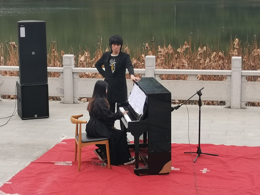 这场音乐的盛宴中,同学们尽情上台表演,释放自己对音乐的热爱——德彪西,李斯特的钢琴曲不绝如缕,回荡众人耳畔,小提琴、钢琴、长笛、歌曲,无数跳动的音符共同展示出了音乐的魅力。在此,学生以音会友,音悦晚秋!