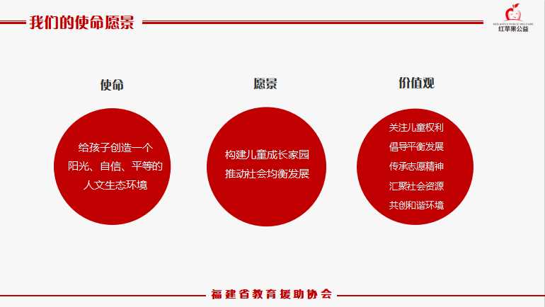协会围绕孩子的个人帮扶层面、家庭增能层面、社会倡导层面,开展了系列项目帮扶,截至当前,项目服务涵盖28个省市451个县,累计服务孩子超过1.8万人次。“福建省教育援助协会”简称红苹果公益,邱老师说“这个群体的孩子,很大一部分经济贫困,身体营养不良,内心又承受着心理创伤。取名红苹果,一方面,希望通过我们的帮扶和社会的关注,让更多的孩子有和红苹果一样红扑扑、圆润的、健康的笑脸,同时也呼吁社会大众更多的关注和支持,一起成为孩子们心中温暖的‘果果姐姐’” 。