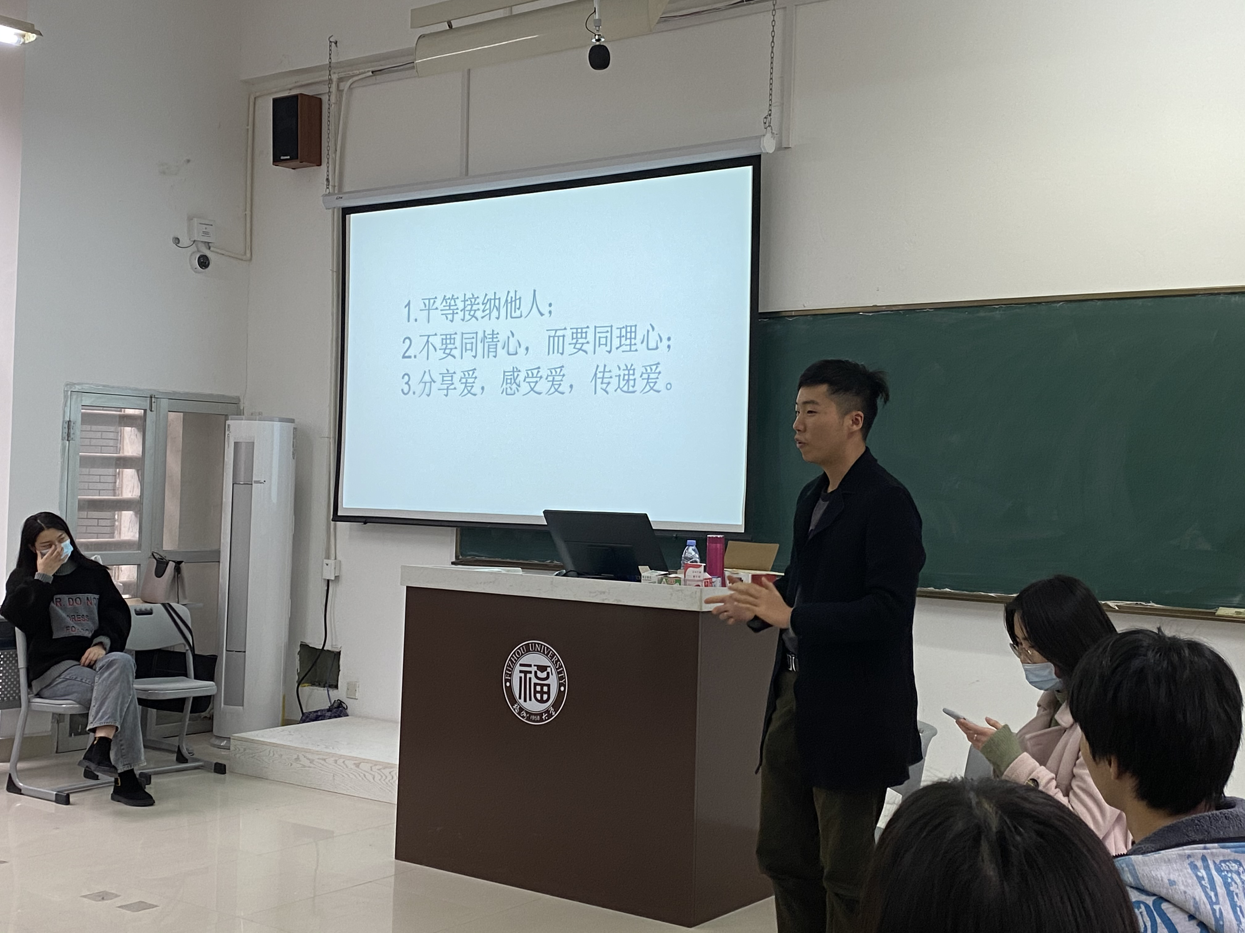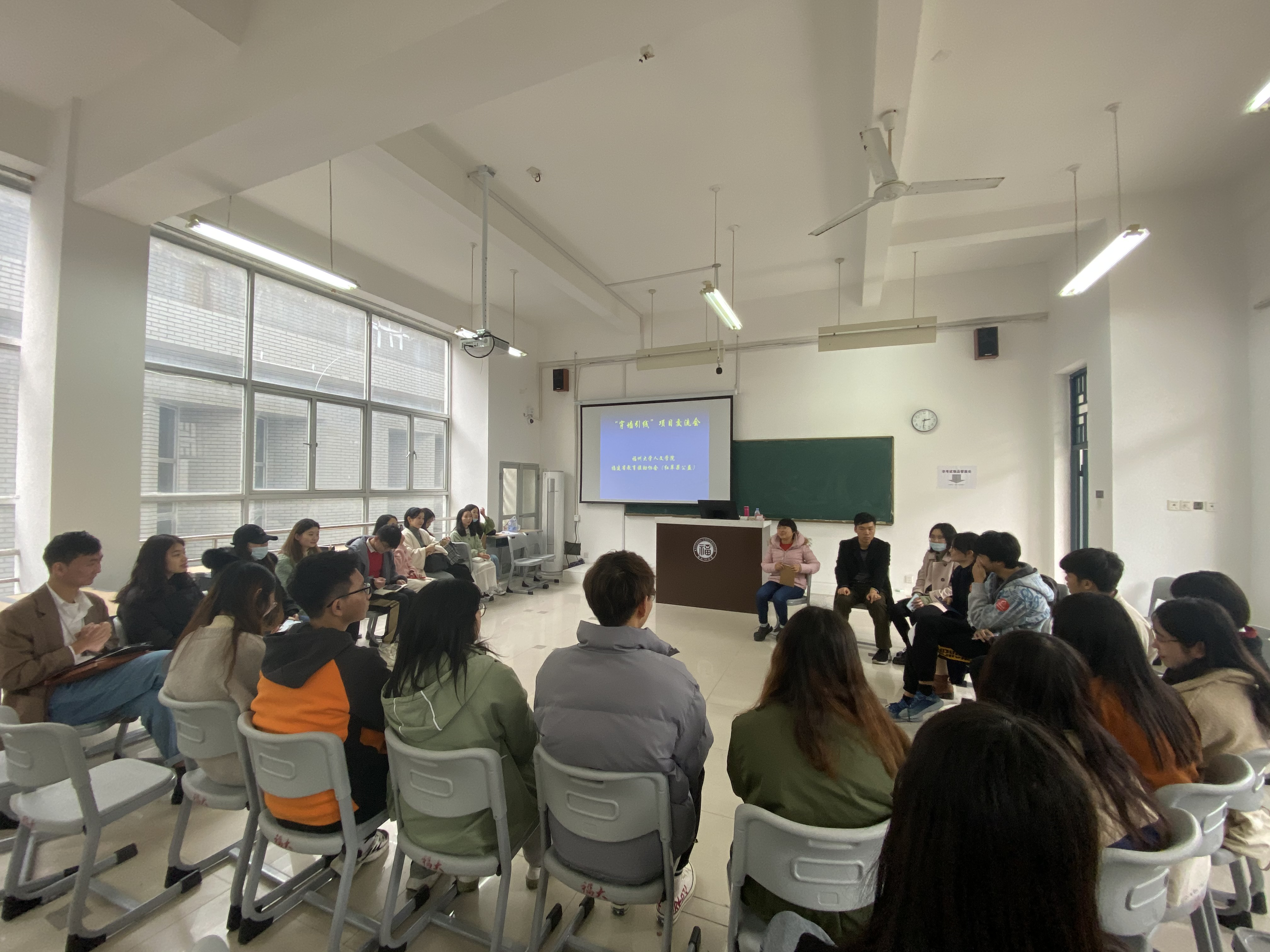 接着,福大人文学院在12月份参与过“穿墙引线”项目的五位学生一一分享自己参与项目的原因、活动过程、体验收获。2020级社工研究生陈雅霜提到,每个孩子生下来都有被爱的权利,爱是发自内心的关怀,父母的爱是孩子永远的港湾,陪伴对于孩子来说才是最重要的,服刑人员及其子女的正常化应被重视。操航同学分享到,在此次活动中她学会了打开自己、接纳共情,我们是要扶起他们的腰,而不是把他们搂在怀里,人要学会感恩、懂得回报,助人是一个快乐的过程。李涵同学向我们传递了“不要同情心,而要同理心”的理念,要平等地去接纳他人。此外,2018级社会学本科生苏义丰提及“增能”,认为这些孩子和别的孩子一样,有自己的能力,不需要过度地“服务”,要让他们感受到自己的能力,恢复生活中的信心;陈馨同学则提到“通过本次活动不仅进一步了解服刑人员子女的生活与心理状况,对这一群体及其背景有了更多深入的认识,而且也让自己的待人接物得到了提升,更多地思考自我与世界的关系”。