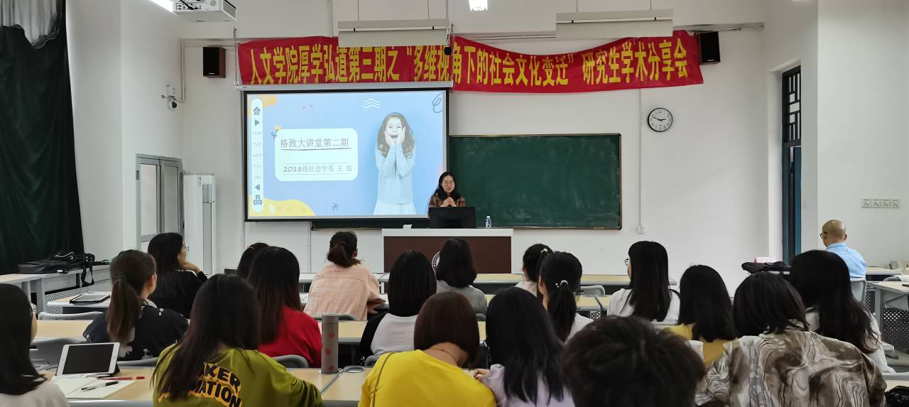 为营造校园浑厚的学术氛围,提升学生的学术思维和学术习惯,2020年10月15日下午,人文学院厚学弘道第三期研究生学术分享会于铜盘校区顺利举行。人文学院社会学系主任、社会学、社会工作专业硕士生导师甘满堂教授与2018级社会学专业王瑶、豆晓恒同学出席了本次分享会。