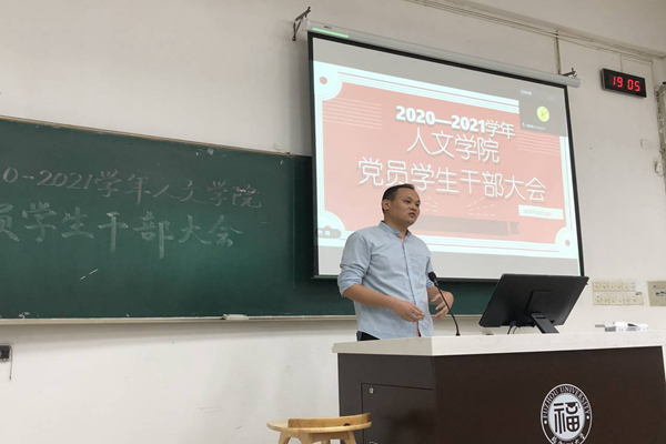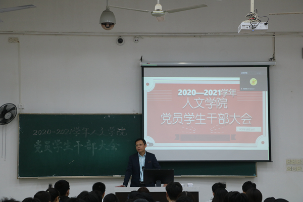 为充分调动党员学生干部的工作积极性,在日常学习工作中发挥先锋模范作用,10月20日下午6点半,人文学院于东3-103教室召开学生党员干部大会,此次大会由人文学院团委书记齐朝阳主持,党委副书记郑志刚、辅导员房菁出席会议,各年段学生党员和主要学生干部参会。