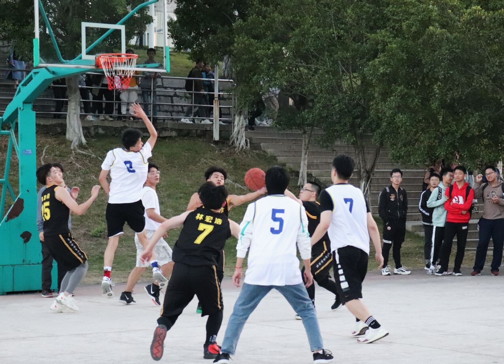 铜盘校区篮球场举行人文杯篮球赛。