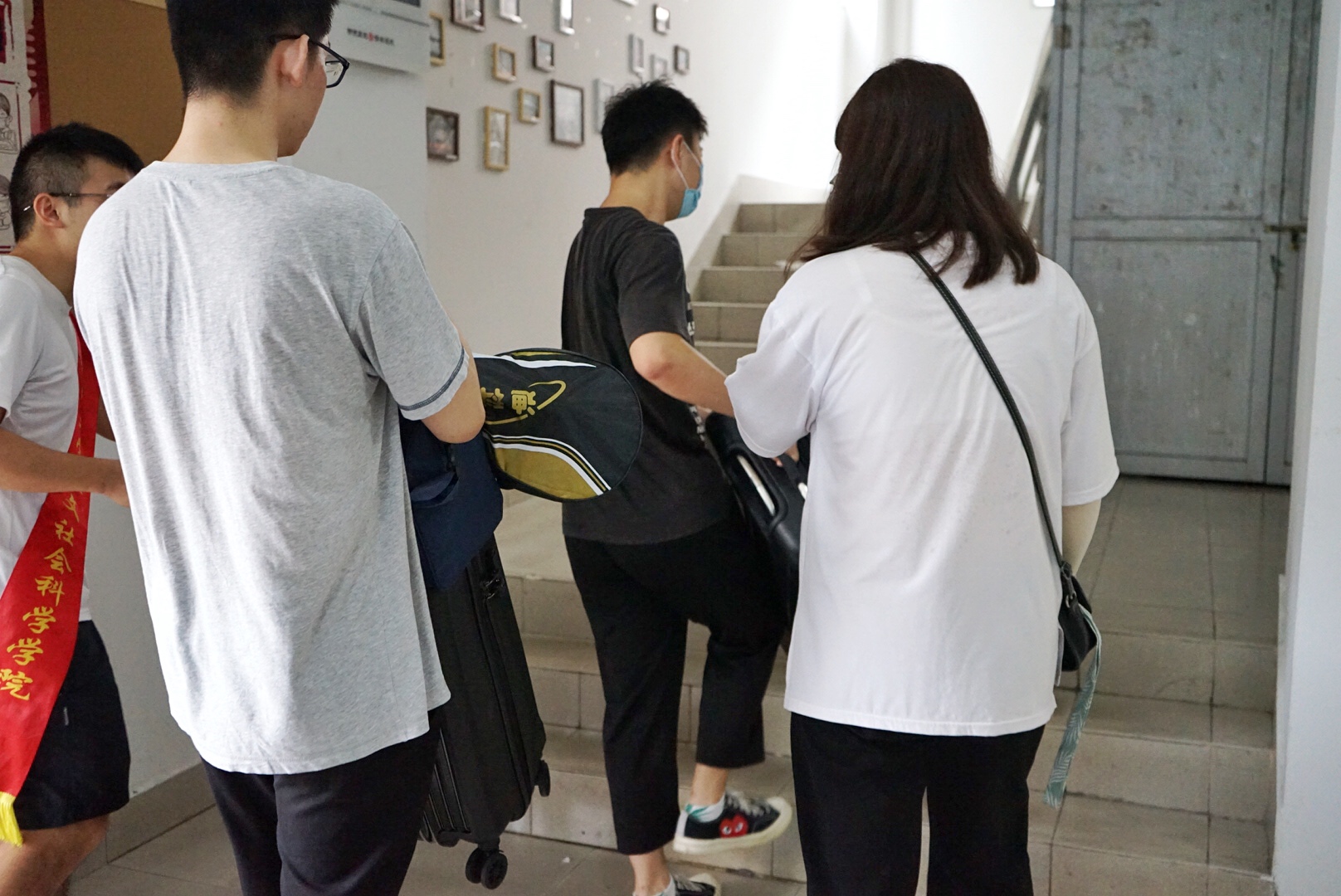 早上8点左右,铜盘校区迎新现场各项工作早已布置妥当。我院志愿者队伍顶着绵绵细雨,引导新生前往9号楼迎新主楼。到达我院迎新点,入目而来的是气球制成的迎新拱门——“人文学子到家了”。志愿者们主动上前帮助新生搬运行李,热情洋溢、动作迅速。报道地点的人员始终坚守阵营,积极协助所有新生完成报道流程。我院党委王群书记、郑志刚副书记以及辅导员房菁老师十分重视此次研究生迎新工作,纷纷下宿舍了解新生的入住情况,同时提醒新生注培养良好的宿舍氛围。此时旗山校区的迎新点也安排了值班人员驻守大本营,同时也有志愿者去迎接新生。跨校区的迎新,改变的是地点,不变的是学院的热情洋溢。