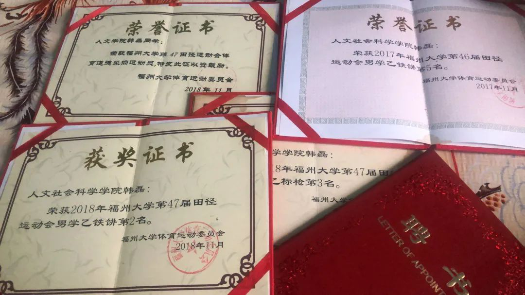 韩磊在校期间获奖证书
