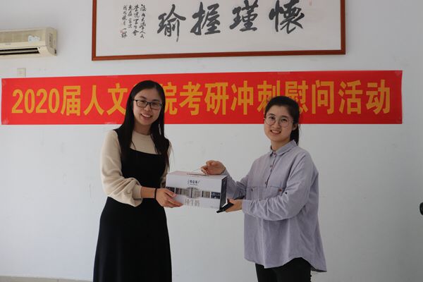 考研日期将近,为激励和慰问学院考研冲刺阶段的学子,11月23日,人文学院党委副书记郑志刚、人文学院辅导员房菁给考研学子们送去了温暖的关怀。