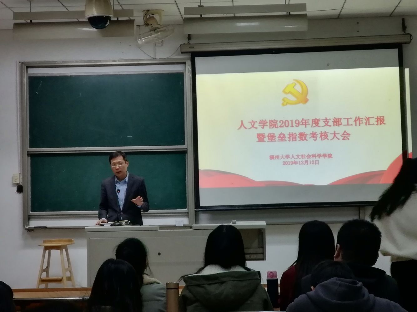 为深入贯彻落实习近平新时代中国特色社会主义思想,坚持和加强党的全面领导,落实党要管党、全面从严治党的要求,牢固树立党的一切工作到支部的鲜明导向,全面提升党支部组织力,充分发挥党支部战斗堡垒作用,根据学院党委安排,我院于2019年12月12日下午4时召开2019年学生党支部工作汇报暨堡垒指数考核大会。