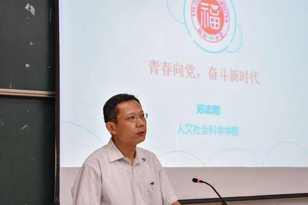 新生“青春路上,向党而行”主题讲座于东3-100教室举行。此次讲座由人文学院党委副书记郑志刚主讲,2019级全体新生出席此次讲座。