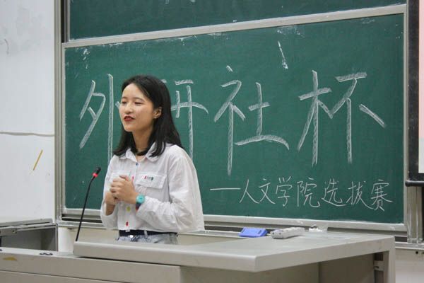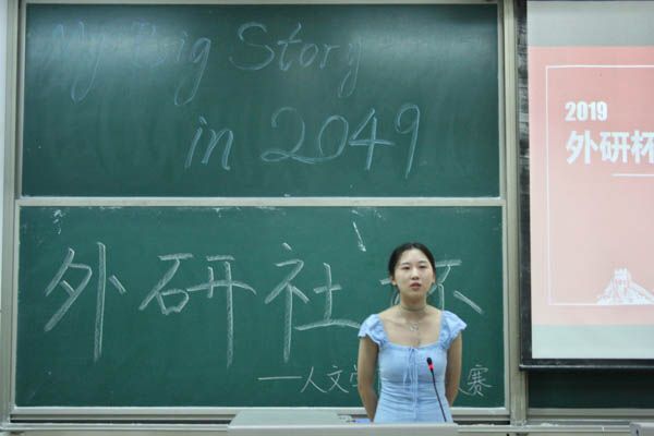 为提高学生英语演讲水平,促进学生英语学习意识,9月18日19:30点,人文学院“外研社杯”英语演讲比赛于文科第二教学楼105举行。此次演讲比赛面对人文学院所有学生,演讲的主题为“Mybig story in 2049”(我在2049年的精彩故事)。