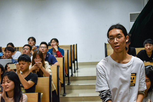 本次竞赛的题目以中国共产党领导的多党合作和政治协商制度的相关知识切入,向在场的参赛者普及与祖国政治的相关知识。比赛现场,参赛者们的热情抢答,引得欢笑连连,气氛一片活跃。第一位成功答题的是来自社会学专业的黄泓同学,其以对国家生态环境保护方针政策的正确认识,凸显了当代大学生对国家时政的密切关注与环境保护意识,赢得掌声一片。紧接着,知识竞答中还穿插了对国家历史事件的回顾,极大地拓宽了同学们的视野、丰富了相关知识。无论是幸运获得答题权的比赛选手,还是遗憾失手的选手,乃至一旁观赛的观众和工作人员都对题目展开了热烈讨论。
