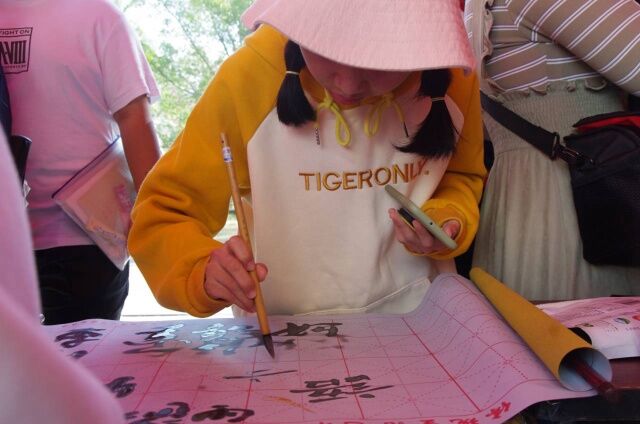 为庆祝新中国成立七十周年,“扬我国优秀传统文化,秉青春之志,创你我芳华”,19级汉语言一班携手19级机械5班和19级物流管理1班于11月10日上午在玫瑰园餐厅前空地举办以“笔墨传情寄古韵,乐中问答显初心”为主题的团立项活动。