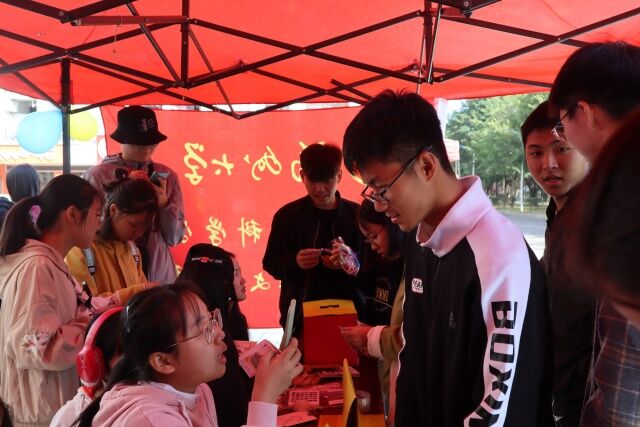 活动过程中,不断有过路同学被吸引并加入游戏中,渐渐把气氛推向了高潮。在 “走过文字的前世今生”的游戏中,同学们用笔墨书写未来,领略文字的魅力,他们玩转甲骨、篆书、楷书,以不同的文字形式表达着共同的期许;在“乐中学党识”游戏中,同学们积极抢答党员知识,相互纠正,在轻松愉快的氛围中不断深入对党的认识与了解,为成为一名优秀的共产党员做好准备。此外, “机械燃我心”游戏中,两人一组,夹气球、走指甲板、夹豆子,同学们深刻体验了合作的力量。在“物我合一”游戏中四人一组,在团队中感受物流的全过程。现场欢声笑语,缭绕不绝。