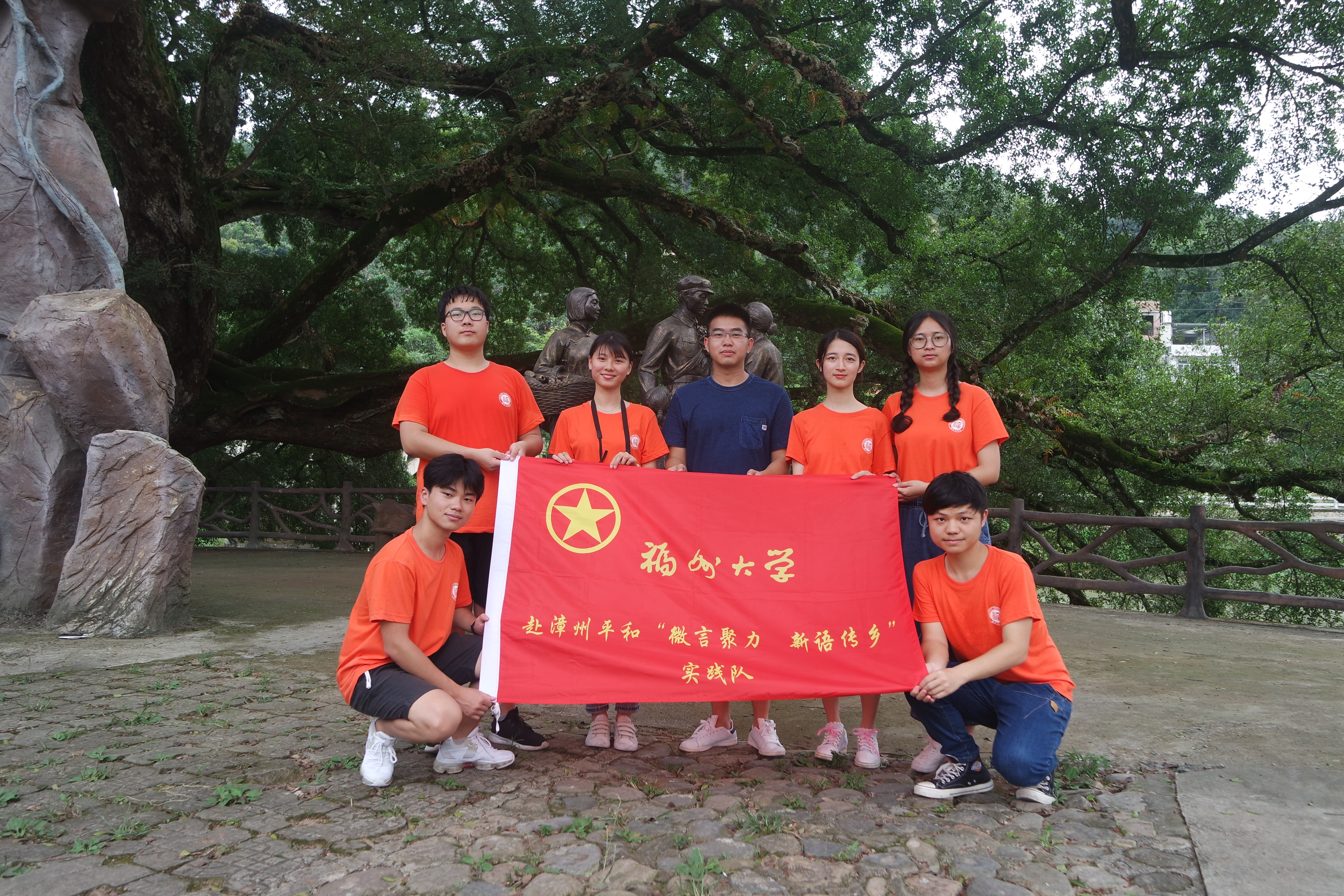 人文学院“微言聚力,新语传乡”实践队在漳州市平和县长乐乡宣传干事汤雄彬的带领下走访联三村贫困户。