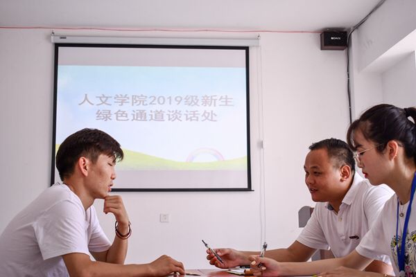 为确保经济困难的新生能够顺利入学,人文学院还在23号宿舍楼一楼设置了"绿色通道",人文学院团委书记齐朝阳热心的与每一位家庭特别困难的新生进行谈话,了解家庭情况,并鼓励同学们积极的投入大学学习生活,解决家庭困难同学的后顾之忧,确保每一位人文学子顺利的融入大学生活!