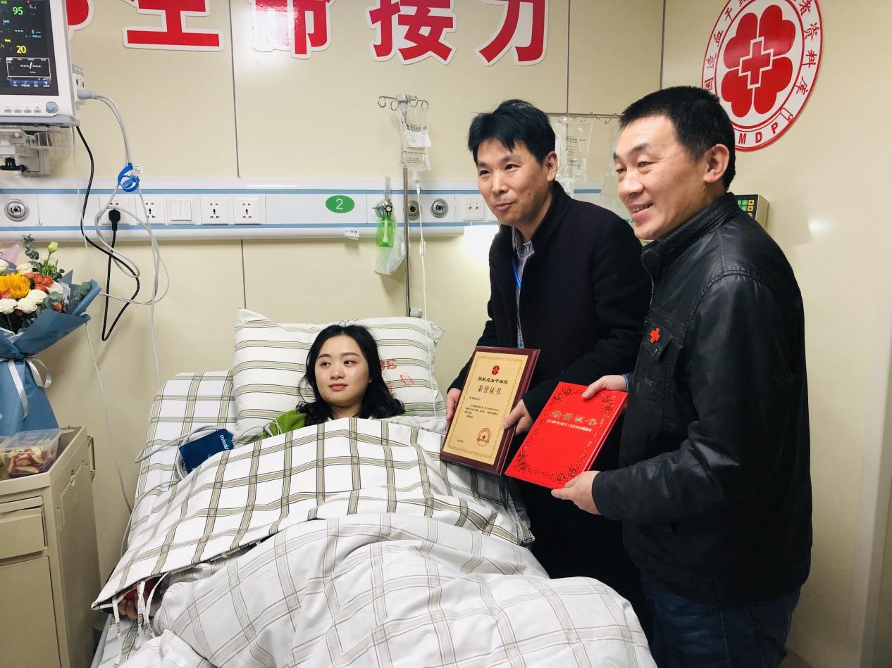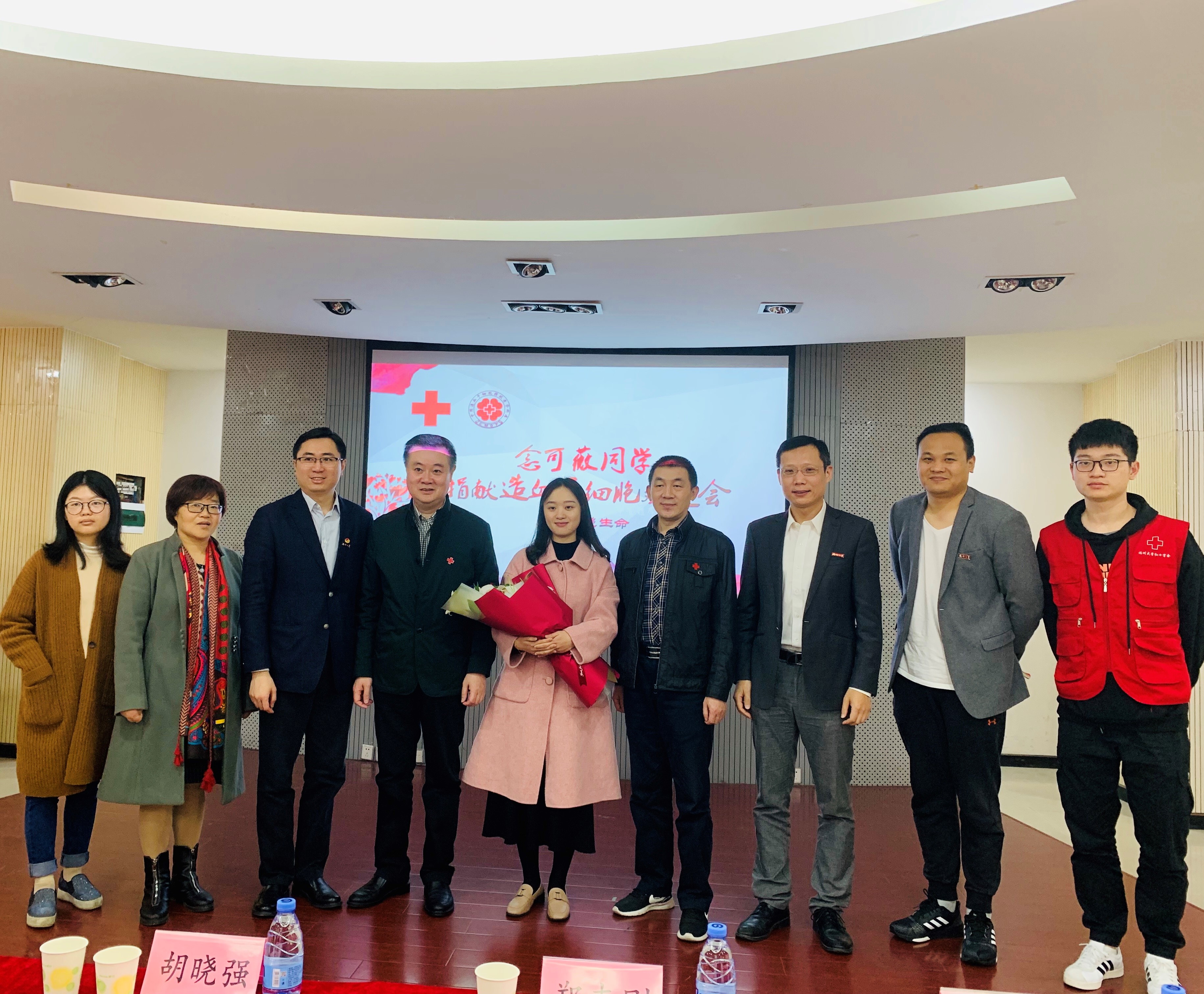 第3例、福州市第62例、福建省第217例、全国第8153例造血干细胞捐献者,她所捐献的207ml造血干细胞将被送往河北廊坊为一名血液病患者撒下“生命种子”,完成“生命接力”。“生命的重量更是爱心的力量”。人文学院在了解到念可薇同学捐献造血干细胞的意向后给予高度重视和全力支持,3月22日为她举办了“捐献造血干细胞欢送会”,以此积极弘扬她的“大爱之举”和“青春正能量”。3月26日捐献当日,人文学院党委副书记郑志刚、研究生导师林胜前往医院探访,对念可薇同学的义举表达了深切的关心和问候,并对其家人表示亲切的慰问。