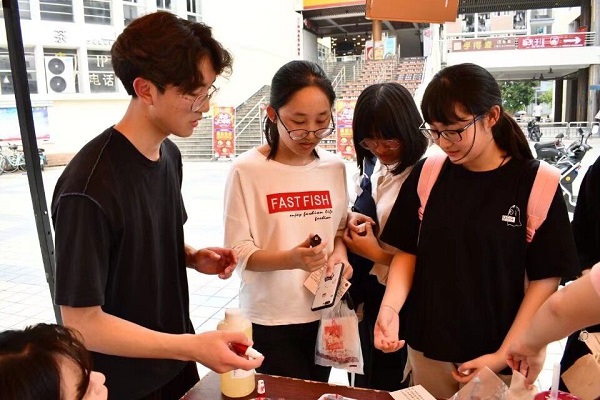 现场同学都热情高涨,积极参与。有的对心理学效应产生浓厚效应,有的低头思考推理题,有的拿着亲手做的口红一脸激动…“亲爱的FZUERS,你们好!您乘坐的18心理学携18化工号列车已到站,我代表全体工作人员感谢您的参与,欢迎下次乘坐!”活动人员李洁热情地和积极参与的同学说着。各班工作人员发挥专业优势,心理班同学带领同学们揭开心理的神秘面纱,化工班的同学运用专业知识一步一步教同学们口红是如何做出来的。细致的讲解,耐心的教导,悉心的提醒,化工班的同学和心理班的同学,把兴趣,热爱都注入了一管管红色的暖心中,同学们对口红的制作充满了好奇,成品出模的时候的紧张,大功告成后的欣喜,午后的绿树暖阳都留在了大家青春的记忆中。