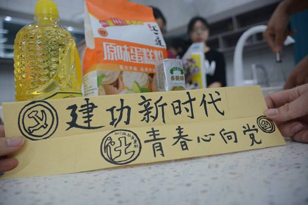 同学们走进厨房,动手做蛋糕甜点,并在蛋糕上装饰相关标语,以新颖且具有吸引力的方式宣传贯彻习近平新时代中国特色社会主义思想和党的十九大精神,大力弘扬五四爱国主义精神。纸上得来终觉浅,绝知此事要躬行。第一次踏入厨房,同学们学习了一些小技巧和料理常识,依次加入的蛋黄、黄油和白糖搅拌出均匀细腻的泡沫流体,手捏锡纸制作模具,将半成品倒入模具放进烤箱烘培,期间空白时间同学们相互交流经验心得。蛋糕出炉时,同学们怀着期待、雀跃的心情围在烤箱周围,不放过蛋糕露面的一分一秒。最后,同学们不忘在蛋糕上装饰五四标语等等,不仅升华主题,更是将“探索”精神铭记在心,时刻不忘福大校训。