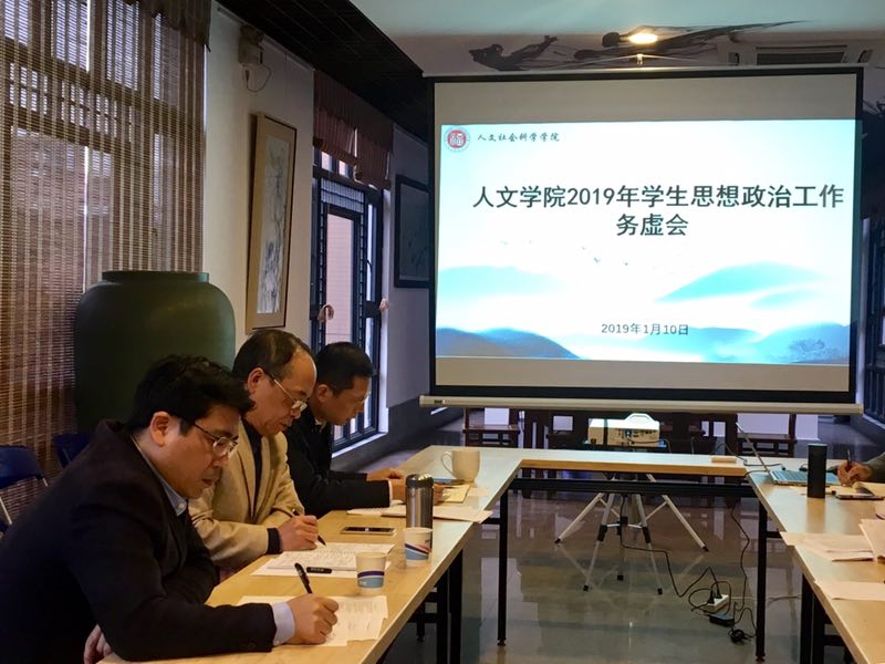 1月10日下午,人文学院于院办传统文化馆召开2019年学生思想政治工作务虚会,校学生工作部(处)徐宏志副处长、学院党委林秋生书记、院党委郑志刚副书记出席此次会议并发表相关讲话。学院全体辅导员和主要学生干部参加了会议。