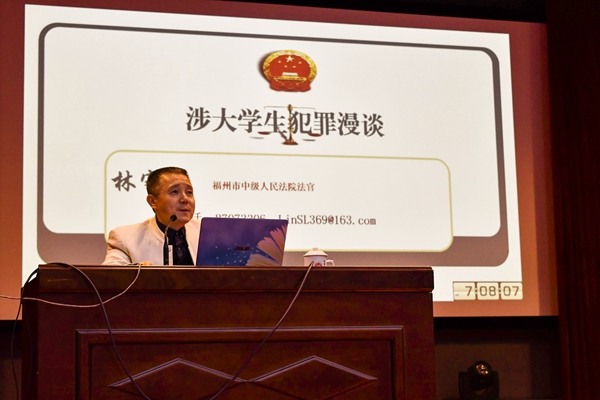 校园法治宣传教育是校园教育的重要内容。为培养同学们的法治意识,弘扬法治精神,12月16日晚7点人文学院于图书馆博学厅举办“明礼知法,正身扬法”法治系列讲座之涉大学生犯罪漫谈,福州市中级人民法院四级高级法官林守霖先生担任主讲人。人文学院党委郑志刚副书记、人文学院团委齐朝阳副书记莅临讲座,全院学生积极参与。