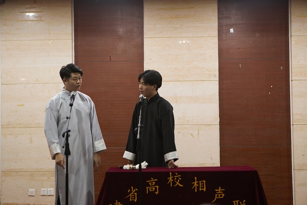 在热烈的掌声中,相声大会拉开了帷幕。王晓智老师发表致辞,说明此次大会旨在让传统艺术进校园,吸引更多曲艺爱好者。厦门大学伯乐相声社带来的相声《礼仪漫谈》向同学们介绍了东西方的交往礼仪,而华夏学院艺笑相声社的《对春联》、莆田学院喜剧社的《打灯谜》则充分的展示了中国语言文字的魅力。福建省高校相声联盟的刘会义老师专门为同学们表演了单口相声《借火》,台上表演精彩,台下笑声不断。
