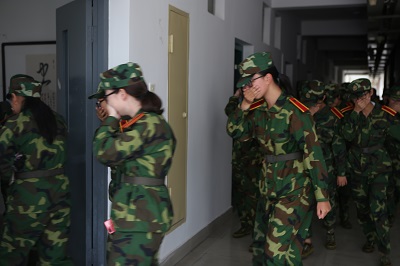 组织军训新生开展逃生避险演练,人文学院18级新生听从指挥、积极配合,顺利完成逃生避险任务。