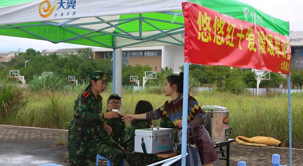 10月15日至26日军训期间,在阴冷的天气以及高强度的训练下,为改善大一新生休息环境、宣传防护知识,人文学院、土木学院等七院红十字会共同开展志愿行服务活动,于一区、三区操场设立主题式服务站点,为同学服务,营造良好的军训氛围。