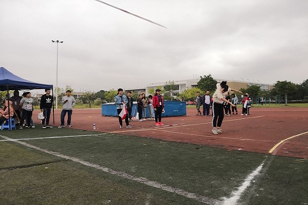 尽管天气微凉,运动员们热情依旧不减。赛场上,一道道优美的弧线轻盈地划过天空。运动员们用手中的标枪向距离的极限发起一轮又一轮的挑战。标枪在空中轻盈的姿态,是运动员们强健力量和熟练技巧的结合。来自人文学院的俞晓莉将力量与技巧合二为一,正常发挥,扔出了不凡的成绩。胡佳颖同学的投掷吸人眼球,赢得观众的欢呼。