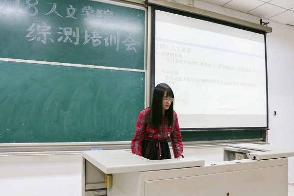 于9月29日晚7点组织开展综测培训活动。人文学院办公室吴珊珊同学担任此次培训的主讲人,人文学院18级全体新生参加此次培训。