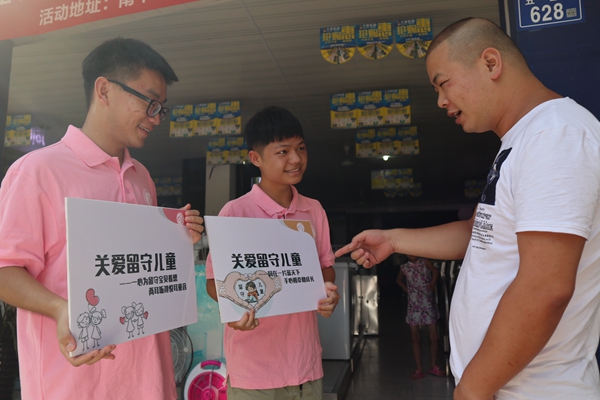 7月14日,人文学院赴浦城“心辅相助,留梦守情”实践队第一站拉开了帷幕。在“奋进新时代,青春争先锋”号召下,实践队队员们走上浦城街头,用告示牌来呼唤对留守儿童的关怀和爱。
