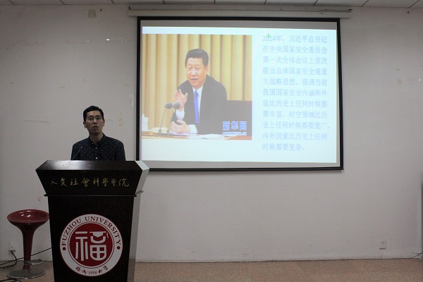 杜领军老师以大学生参与疆独和加入国外间谍组织的两个例子作为切口,引出“国家安全”的主题,充分显示出个人行为对国家安全造成的影响。国家安全是国家的基本利益,是国家繁荣昌盛不可或缺的一部分,保证国家安全要落实到公民个人,从个人做起,从当代大学生做起。“作为入党积极分子,大家更要端正思想,规范行为,不做威胁国家安全的事。”杜领军老师讲道。
