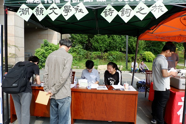 钟声文学社以文学结合诗词、娱乐性结合文学性的方式打造妙趣横生的系列游戏,包括文字灯谜、成语接龙、你比我猜、朗诵经典篇目等,吸引众多文学爱好者前来参与。在成语接龙关卡,不少同学能够顺利集齐6个成语的接龙,但在背诵经典篇目时被频频难倒,参与此次活动的同学大多略带遗憾的感叹:“平时还是需要养成多多阅读和背诵的习惯,否则书到用时方恨少。” 值得一提的是,潮韵文学社、钟声文学社的活动不仅吸引许多对诗词感兴趣同学的参与,也引来了图书馆馆长刘敏榕研究员、学生工作处副处长徐宏志的关注。
