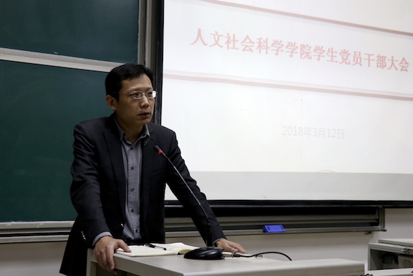 2018年学生党员干部大会在文1-305教室顺利召开。人文学院党委郑志刚副书记、团委苏思文副书记以及各年级辅导员出席此次会议。