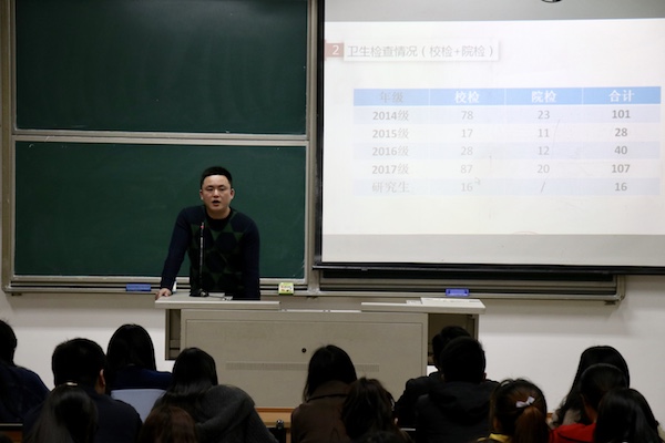 首先,苏思文老师就本院上学期的学习绩点、卫生检查、晚熄灯和学风建设情况等问题做出充分说明,并对加强学院院风建设提出具体建议,希望各班能根据学校的规章制度制定相关班级制度并尽早施行。