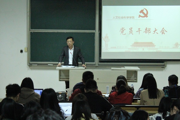 大会上,郑志刚副书记结合数据对上一学期人文学院各年级的学风学情做了总结和分析,指出当前同学们的学习方面存在的问题。他提醒党员干部一定要组织好学风建设活动,争取从宿舍、班级、年级到学院,全面培育良好的学风院风,营造“积极进取、力争上游”的人文风气。此外,郑志刚副书记还特别关心人文学院毕业生的“三率”情况,要求党员干部要按照学院指示做好本职工作,圆满完成提高毕业生“三率”的工作。