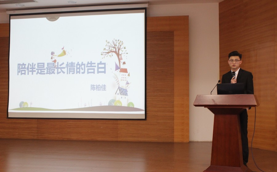 2015级心理学专业的陈柏佳同学基于其专业知识的学习为在场同学分享了四本有关心理及心理咨询的书籍,希望以此帮助同学们了解更多心理知识,更好地处理心理问题。陈柏佳同学表示,对心理学知识的学习掌握让他在帮助解决同学心理问题时能够采取不同的方法针对性解决,一些心理咨询技巧的运用如专注与倾听、情感反应等也有利于引导同学进一步诉说自我,达到良好的沟通效果。“因被需要,因能帮辅,因被感谢,因真有效,我想,这是我持续任心理保健员的动力来源之一”,陈柏佳同学在回忆自己帮助同学的经历时感叹道:“陪伴是最长情的告白,我愿一直都在,以心潜心,守愿前行。”