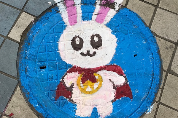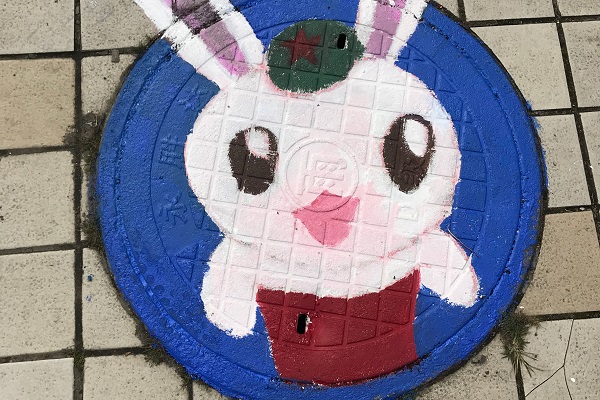 16级汉语言文学1班团支部主办的以 “弘扬十九大精神,躬创青年先锋岗”为主题的特色活动的成果。他们用共青团团兔的形象和各种经典的动漫卡通形象,重新装饰井盖,瞬间让不起眼的井盖变得生动活泼,引得校园里很多同学驻足观看。一位土木工程学院的同学在接受采访时说:“活动充满了艺术性,很能体现学校的人文关怀。”