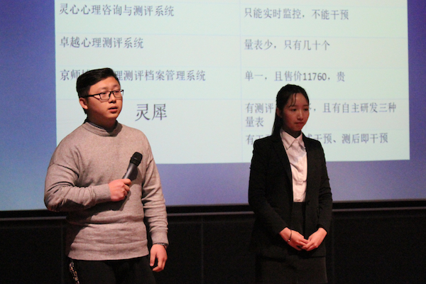 本次比赛共有来自全校的26支团队参加。本次比赛人文学院共有三支优秀创业团队参加——分别是福建省乔木文化科技有限公司的灵犀项目、福州战狼优教网络科技发展有限公司的战狼项目和校友社交平台项目“校友君”,26支团队均实力雄厚,赛况激烈,有的立足短视频制作,有的发展小程序,有的着重数据分析,有的关注社会心理评估。其中,来自人文学院的战狼项目在宣讲环节中表现十分优异,表达流畅,思路清晰,优秀的PPT展示更为其增分不少。而灵犀项目则聚焦心理评估及干预,独特的研究点引起评委的极大兴趣。