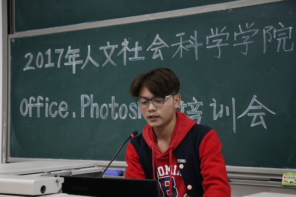 初入大学,参加各种学生工作,必定需要用到各种各样的办公软件,学习掌握一些基本的操作技巧,利于同学们更好地完成学生工作。据悉,本次培训会为Word、Excel、PPT以及Photoshop的联合培训,为让同学们更好的掌握办公软件的操作技巧,培训会前已提前发送各种培训材料以及PS安装包给新生干事,并要求有条件的同学带上电脑参加此次培训,以便进行手把手教学。人文学院团委组织部部长白世龙为同学们讲解了Word、Excel以及PPT的基本操作技巧,例如Word软件中如何调整标题和正文的格式、如何插入目录和超链接等问题。白世龙将每个操作步骤详细地演示给同学们看,同学们也在自己的电脑上进行操作,双向互动的培训模式使培训效果更佳。此外,本次培训会特别邀请校社联宣传中心的高旻和颜宇铖辅导同学们操作Photoshop软件,高旻为同学们讲解了Photoshop软件中关于图层、颜色模式以及选区等问题,同学们认真听讲并动手操作,积极询问各种问题,高旻一一耐心解答。培训现场气氛十分轻松活跃,同学们也掌握了实用的操作技巧。