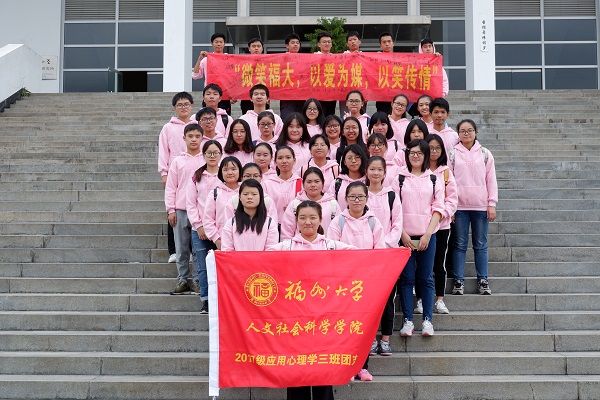 17级应用心理3班团支部举办了以“微笑福大,为爱传递”为主题的团立项活动。活动通过展示各行各业的微笑照片、同学填写祝福卡片、视频录制行人口头祝福等多种方式,期望以福大“小家”带动社会“大家”传递美好笑容,传播社会正能量,实现“微笑中国梦”。