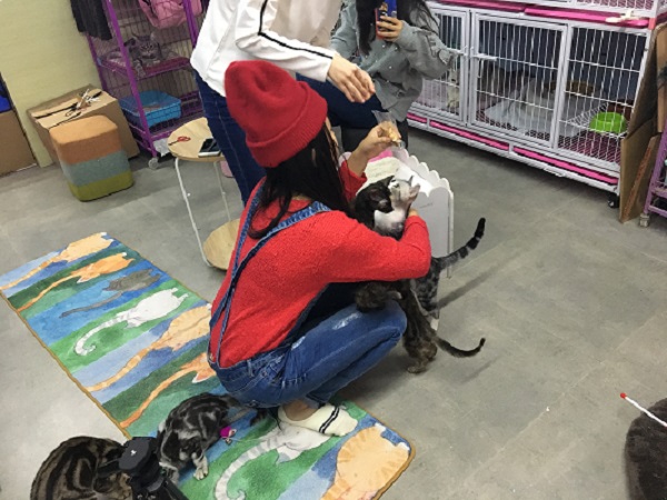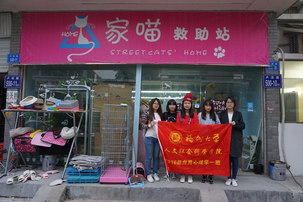 2016级应用心理学系1班团支部组织该班团员于11月17日前往“家喵”救助站开展关爱流浪猫志愿活动并进行直播。