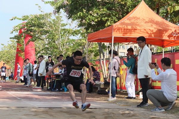 11月17日上午9点20分,在一区操场东南坑上演了一场精彩的比赛——男学乙三级跳决赛。人文学院16级林阿凉同学参加了这次比赛。