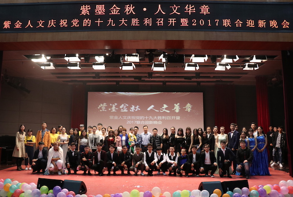 联合举办的“紫墨金秋·人文华章”——紫金人文庆祝党的十九大胜利召开暨2017联合迎新晚会于11月5日晚7点在博学厅隆重举办。人文学院党委郑志刚副书记、紫金学院党委郑寿副书记、紫金学院团委李金土书记、人文学院团委叶阁泽书记出席本次晚会。