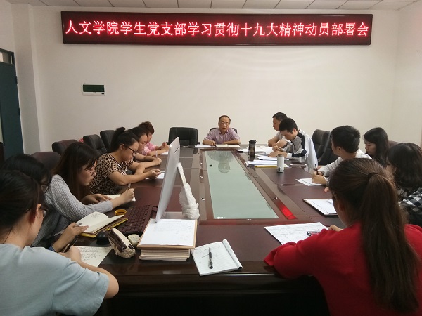 学生党支部召开学习宣传贯彻党的十九大精神动员部署会。学院党委林秋生书记、各年级辅导员、各学生党支部书记等相关人员参加会议,院党委郑志刚副书记主持会议。