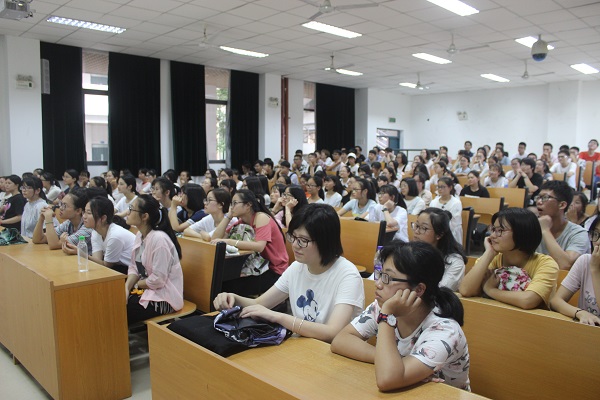 “三种精神”——即以张孤梅同志等为代表的老一辈艰苦奋斗的创业精神;以卢嘉锡先生为代表的严谨求实的治学精神;以魏可镁院士为代表的勇于拼搏的奉献精神。短短时间里,她娓娓道来三位名贤的人生历程,如春风化雨悄然感染了在座的每一位同学。在场同学不时发出阵阵赞叹。此外,罗导还以亲切的口吻叮嘱同学们“注意饮食习惯,不要暴饮滥食,保护好肠胃。”简单的话语传递着温暖与关怀。